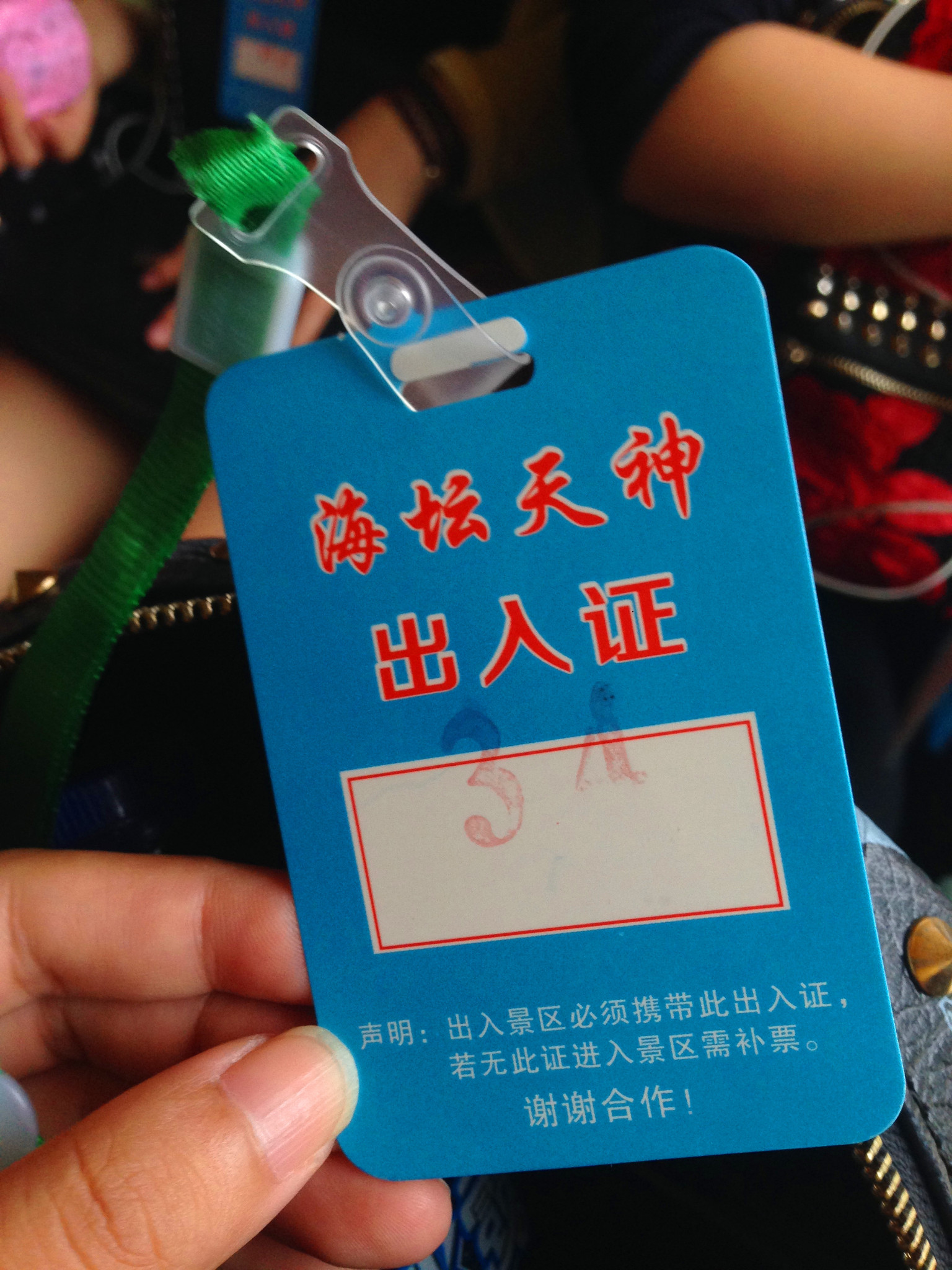三轮车上买票,景区是由私人承包的,门票25元,学生证等证件一律不打折,最后会发一个这样子的牌子给你,景区出去后再次进入会检查。