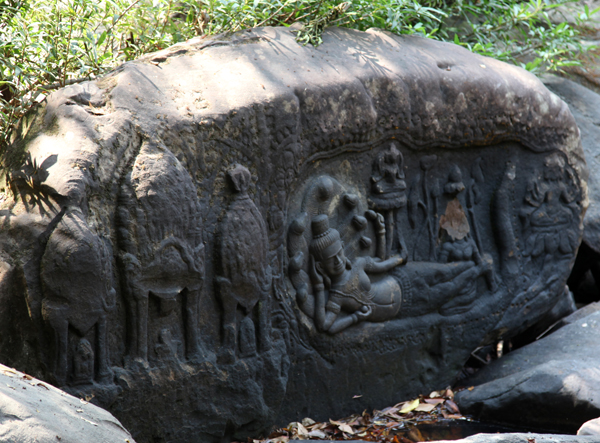 可以欣赏到的地方 :很多寺庙中供奉林迦。吴哥寺第一回廊、女王宫、高布斯滨、崩密列等处都可以看到湿婆神的浮雕。