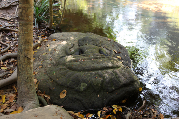 可以看到有关四面佛的古迹较少,在吴哥寺、荔枝山、高布斯滨等处能够看到有关四面佛的浮雕。