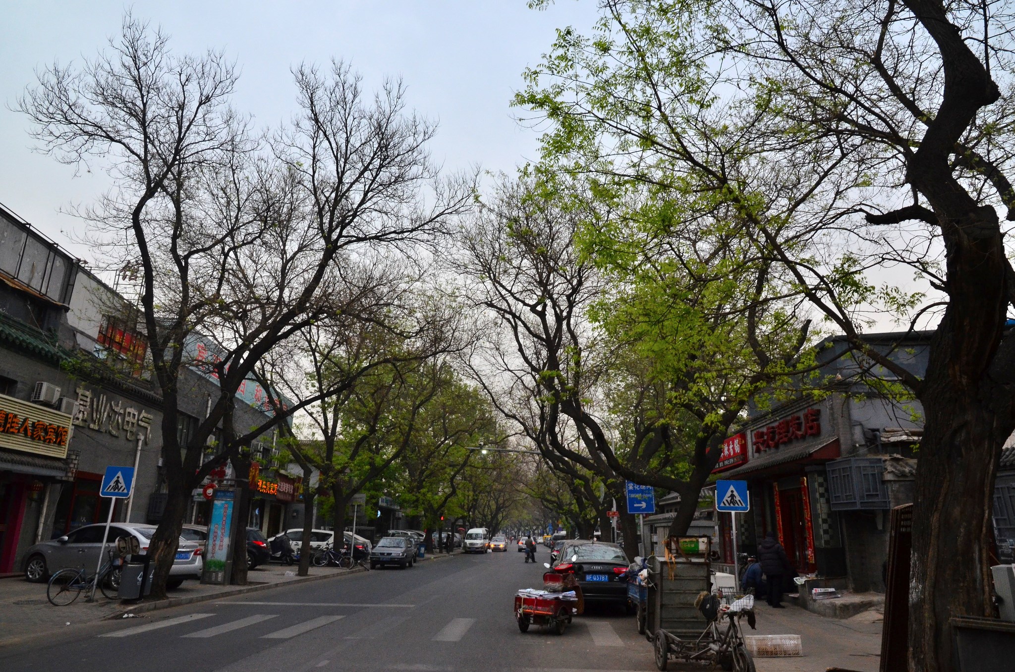店前小街,老树泛新绿。