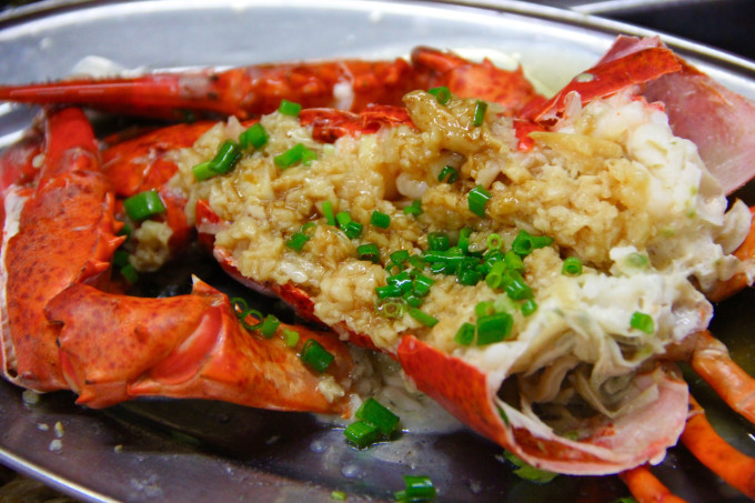 蒜蓉蒸澳洲龙虾,蒜蓉清蒸,既保持原味又使龙虾肉质更加Q弹,配上林姐家的独家酱料,口感非常好!