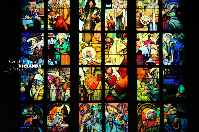 圣维塔大教堂里的彩绘玻璃,出自捷克国宝级艺术家穆夏之手。色彩绚丽夺目。