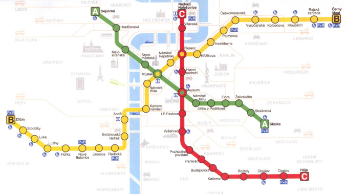 ↓布拉格市区地铁图