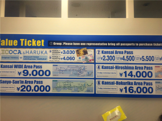 。关西机场和机场JR站很近,顺便说一句,关西机场比较微型,和天国的2.5线城市机场规模差不多,但重要的一点,这个机场是日本人垃圾填海建成的(肃然起敬)。出了机场经过一个二楼通道就来到了机场JR站,我拿上所有人的护照和在国内提前买好的关西JR5日交通卷去兑换。好多的台湾人啊,都是拿的绿皮的中华民国护照,兑换处虽然人不是太多,但是这个兑换起来比较麻烦,好多人都是选来选去,耽误了不少时间,工作人员中文很nice。兑换这个排队时间都比排队出关时间长,15:55分兑换好了4张JR pass,启用日期是8月21日至25日。这里JR pass我简单的介绍一下,就是日本根据地域和时间的安排,针对境外游人推出的一种交通套票,比较简单和实用。在规定的时间内和地域内可以不限次数的乘坐一些交通工具,具体的要根据你的行程来购买。因为我们的行程前5天跑的地方比较多,所以我们购买了关西JR5日卷,包含了5天内的关西大交通所有费用。这里推荐提前定好行程的人在国内代购,比在日本当地买要有优惠,我在国内购买的是成人8500日元,这里柜台上是9000日元。