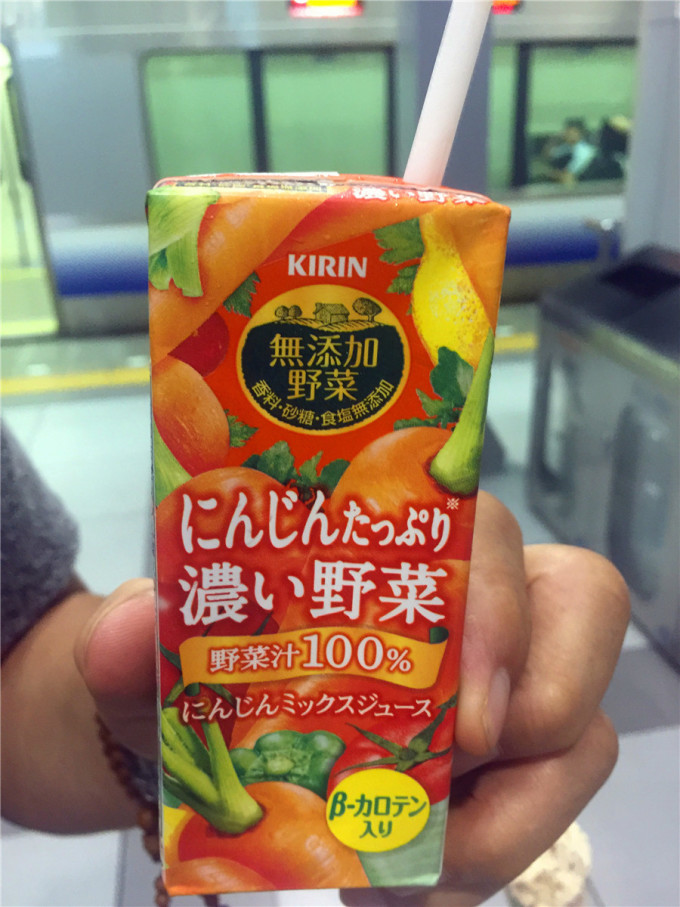 进站等车时,旁边好多自动贩卖机,先搞几个日本绿色饮品尝尝
