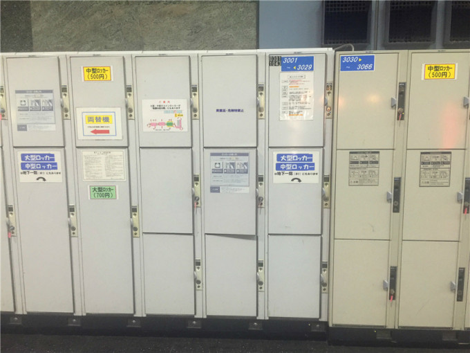 JR站的储物箱,很便民,这种分类储物箱在日本各个交通站很普遍,很方便游客寄存了行李出游,玩回来取上行李坐车,很人性化。