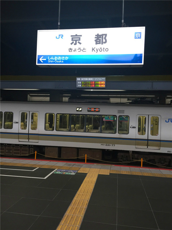 日本的交通比较复杂,车次车辆也比较繁多,所以我推荐大家在上车前一定要确认一下自己要坐的车次,小心坐错了,我的经验是每次都要问一下列车管理人员来确认。日本的时间观念和平日严谨的工作态度确实值得我们学习,每一趟列车都是精确到分,说17:32到,绝不33来。这样下午5点半就来到了京都。出站后打了一个taxi,日本是右驾国家,出租车的后门是自动开关的,以前看攻略中说日本的出租车司机都是爷爷辈的,这次可是得到认证了。