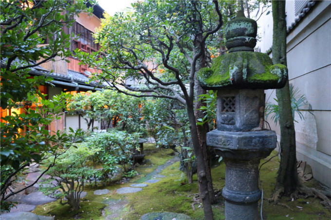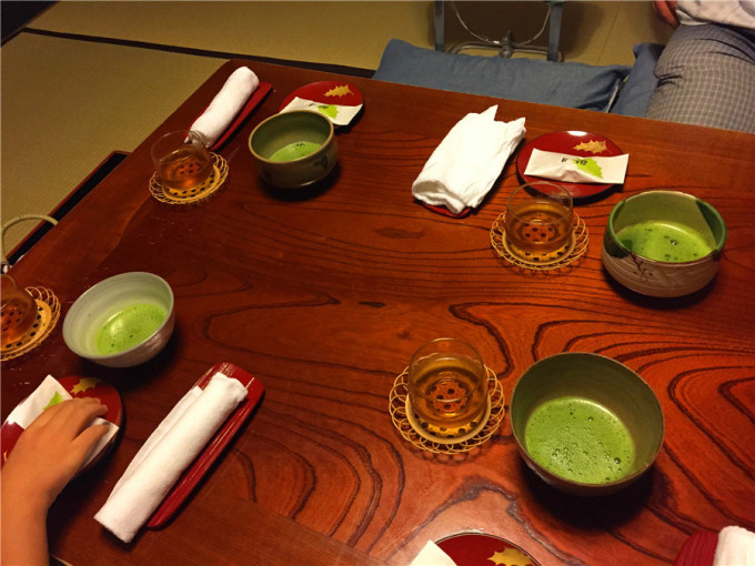 google map,我的实时交通工具,一刻也不能离开它。20分钟后,我们抵达了首次来到日本的第一晚下榻地——佟家别馆,这个京都著名的3家传统旅馆之一,这三家称为京都最有名的“御三家”,分别是“佟家”“俵屋”“炭屋”。虽然不是佟家本馆,别馆一样火热,提前2个月才顶到了2间房。尤其是佟家的怀石料理,曾获米其林一星的评价。18:00到店后,热情的佟家人办理了check in,询问了我们希望的晚餐时间,我们定在19:00开始,在一楼的房间内。我们定的两间房一间在一楼,另一间在这间顶上,离的很近。放下行李后,佟家人就送来了抹茶茶点。