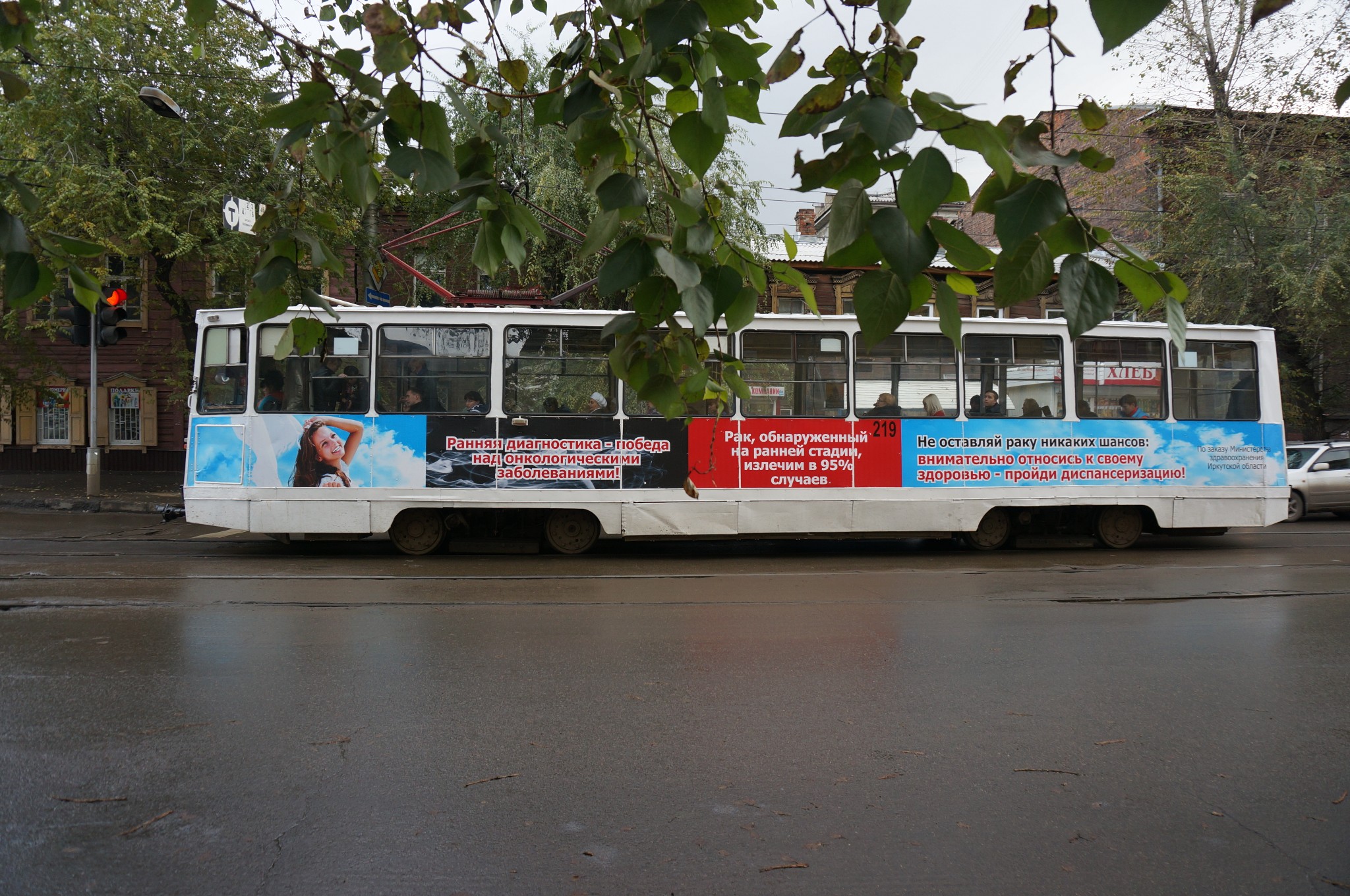 我们到了伊尔库茨克市区了。看,有轨电车。伊尔库茨克市有一个就是地上都是有轨电车的车道,还有就是,汽车的味道比较大,某人跟我说他们这边是柴油车,所以味道大,具体是怎样的我也不清楚。。