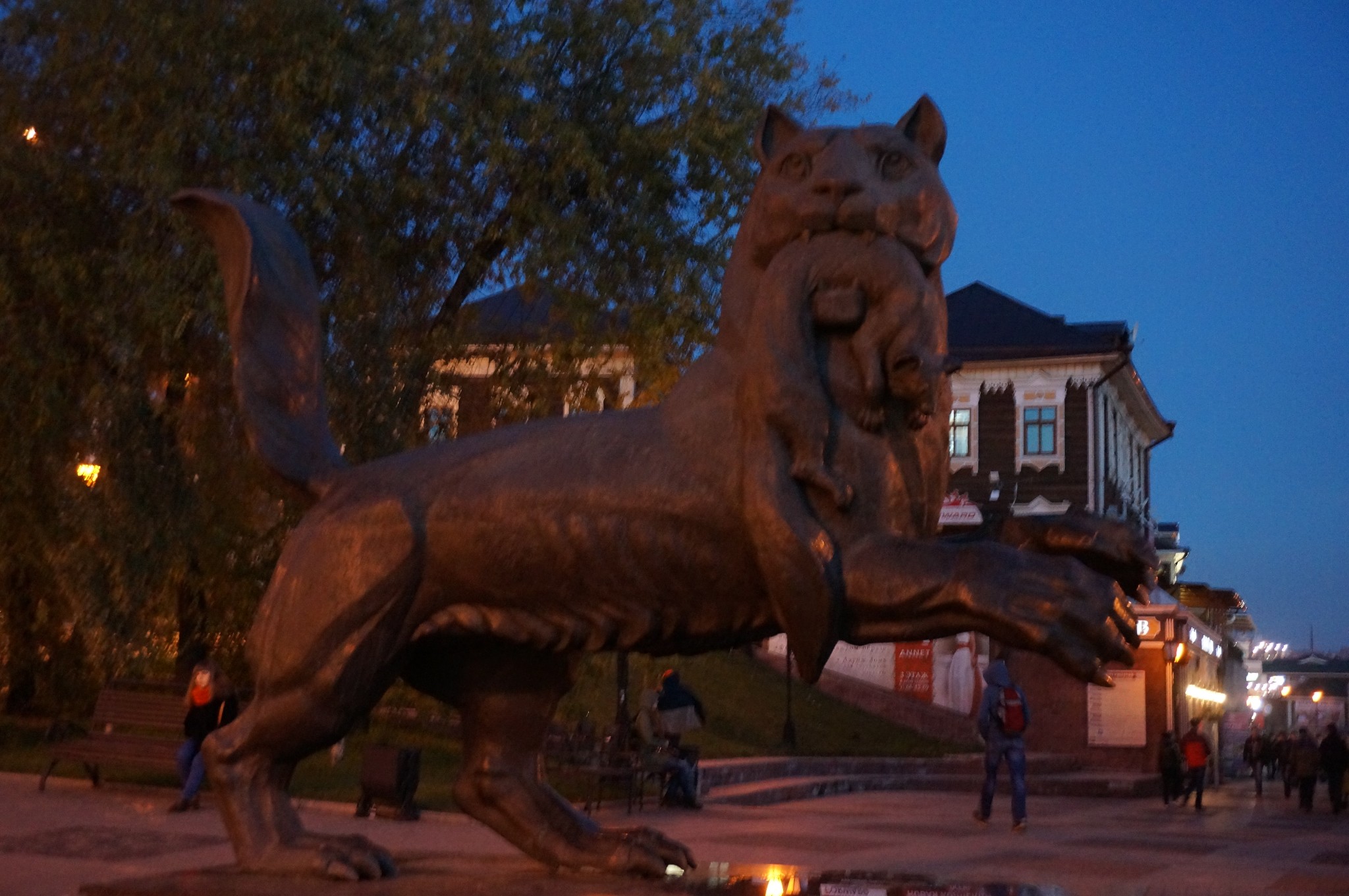 好多地方都见到这个猫叼着狐狸,是伊尔库市徽雕像。不知道有啥故事,语言好的童鞋,翻译一下。