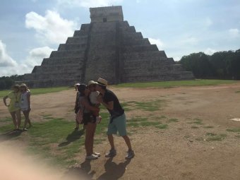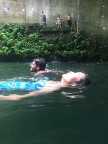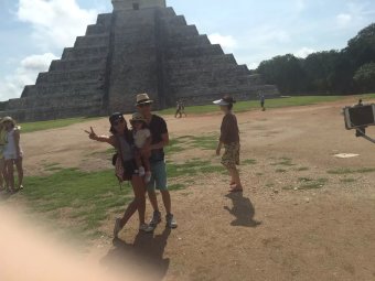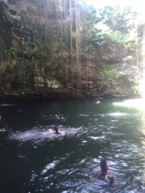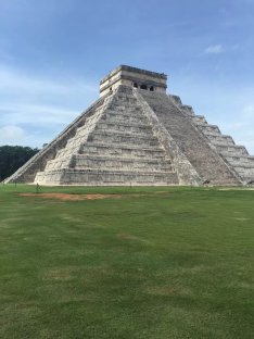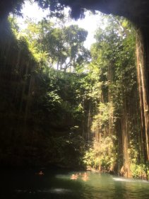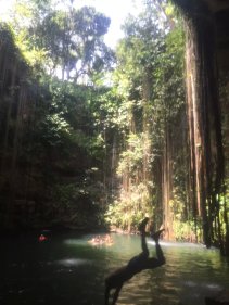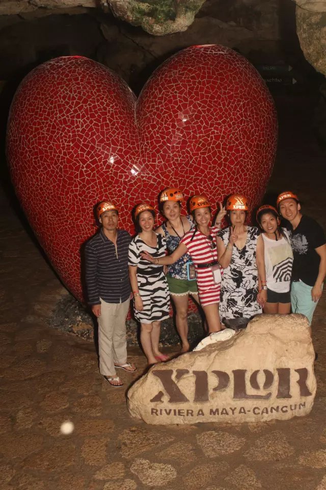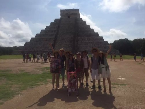 怕大家太累, 第二天安排了金字塔玛雅遗址。 这地方虽然路程远点。但是很值得去。在提一下,这天行程还是包车, 10个人刚好一车,我还要求要了CARSEAT给宝贝(免费哦)。3个景点,每个人平均$80 (包括午餐自助餐,以及门票)。比拼团贵点,但是时间很自由。 我们早上7点就出发了。从酒店开车去CHICHEN ITZA 大概2个半小时,到了CHICHEN ITZA 菜9点多,还不是很热,人也不多。大家赶紧各种拍照,趁大家忙着看手信。我和老大交代完注意事项。自己就脱队全景走了一遍,跟着别人的导游听听历史。等我走完一圈出来,人已经超级多了,并且太阳已经好大了。全身都在滴汗。 匆忙和大家回合,出发去CENOTE IK KIL 吃午餐(费用已经包了),距离CHICHEN ITZA 10 分钟车程。 是一個由天然雨水浸蝕而成的天然井。 吃完午餐,时间还早,大家赶紧下井, 游泳,跳水。 从井底往上看真得很美。 回程我们另外加了景点Ek Balam Ruins - EKBAL (一定要记得带驱蚊的,很多蚊子)。废话多了,还是看图片。