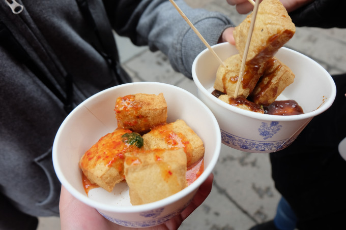 臭豆腐,鸡爪,虾扯蛋。。。。。。西塘里的美食还真不少,虽然挺常见,但是不尝一下古镇的风味那怎么可以。我们还碰到了一个会做生意的老板娘,生怕我们觉得贵不尝试,于是表示每样1元就可以尝尝鲜。觉得好吃就多买点。表示臭豆腐与鸡爪真的特别美味,带点回旅馆当夜宵也是极好的。西塘内可以说遍布这些吃的,所以错过一家不用担心吃不到。
