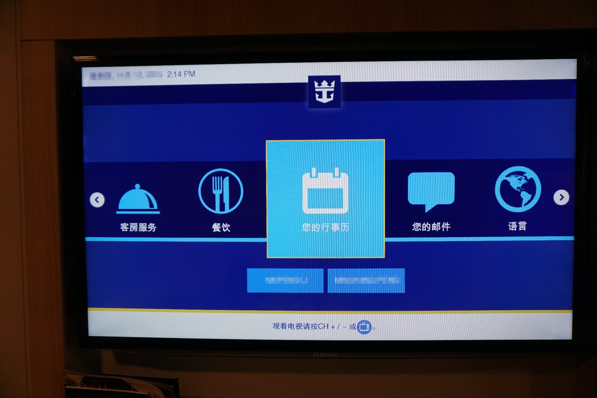 你也可以通过电视或者遍布船的各个电子显示屏来参考信息