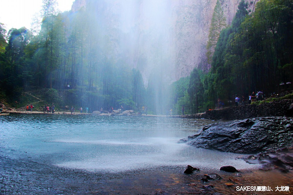 看着萨克斯立在大龙湫岩壁上,也许它有一种征服自豪感吧。
