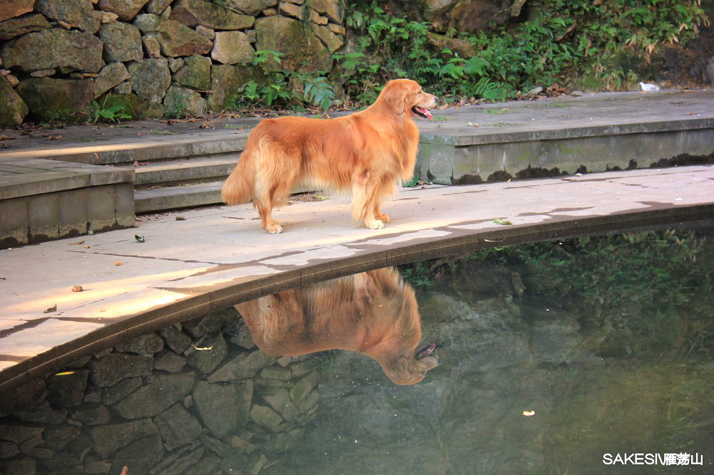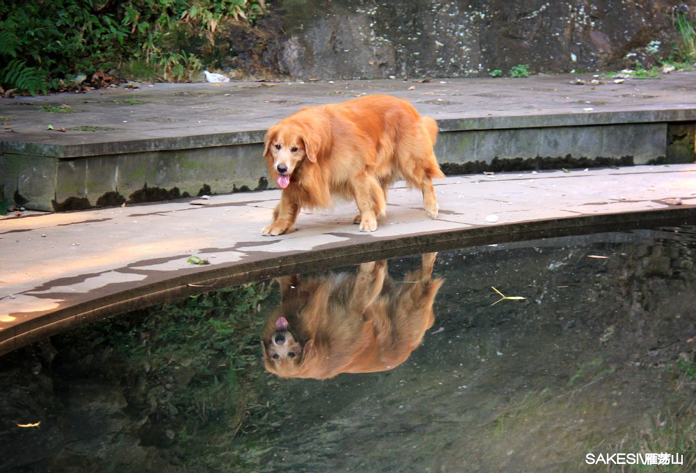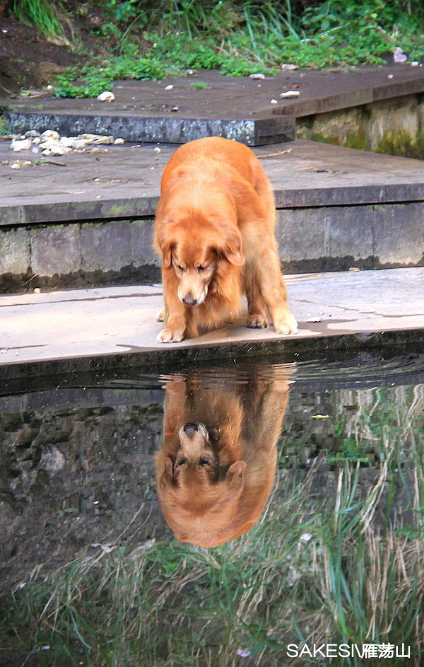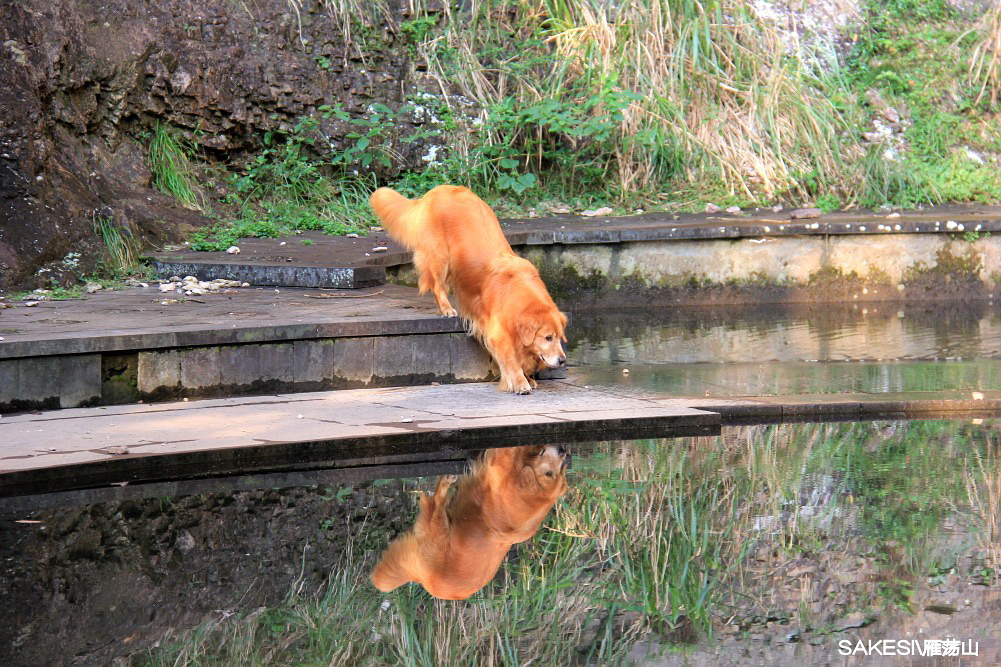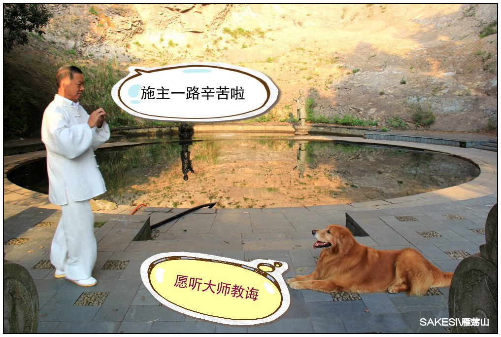 约走了半小时左右,见一山壁,山壁前有个圈水池,就像一面镜子,在这面前什么都是镜像的,挺有意思,萨克斯心想,怎么水里面还有一个跟我一样的,于是就来回追,真是傻小子,老道见到萨克斯,相互问候,并教我们如何选择线路,非常感谢。