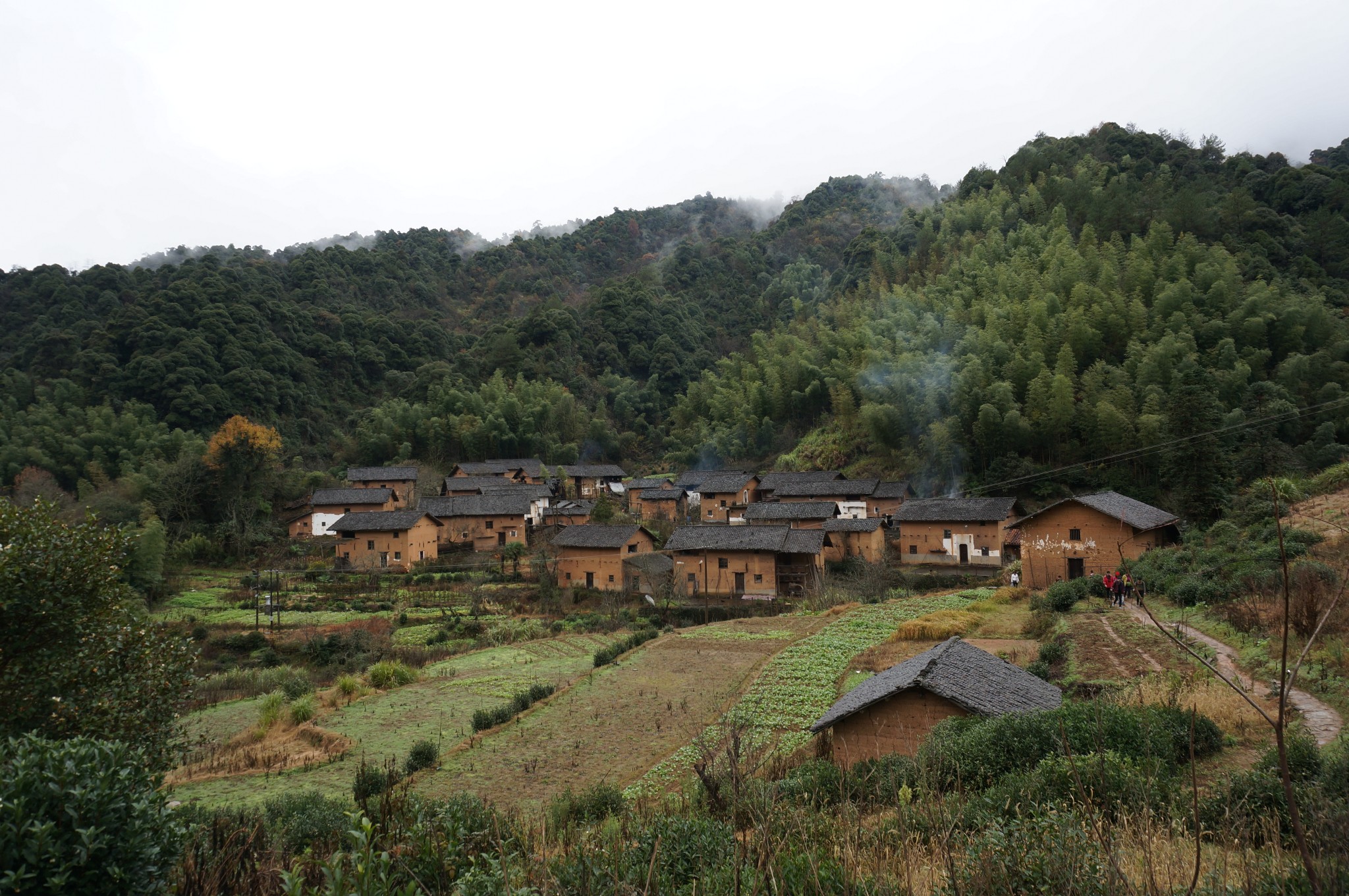 沿着村头的石板路,逶迤而行,一条宽敞的路由北至南贯穿全村,我在这里为什么不再石板路来表述这条路呢?是因为村里前些年为了方便种的稻谷或其它生产作物运到家门口,原本全是青石铺成的路大部份用水泥浇在下面了,那些石板都是非常平整的,真是太可惜了。不过,你随便往这条主路上旁边的小巷里一走,则都是更窄的深巷,平整的青石板,踩在上面,那种历史的沧桑感油然而生。 这个有着1000多年古村,现存不少是两三百年前的徽派建筑,不过,在村里也常看见用泥土做成的房子,当地人叫土墙屋,十分简陋,还有一些就只是用木泥面,在风雨多年的蚀化下,显得破旧不藏,看来这个村经济还是比较落后。全村近600户人家中,赖姓是主姓,占90%之多,不少还住着古老的大屋,黑黑的,不过,很多农户家都很清洁。大门前有有雕刻或是用青石做屋基的,那就是祖上曾有过官宦或是经商的人家,寻常百姓家的房子显得很小气,就是门口也比那些大房子起来小得多。整个村子在大山的拥抱之中,那一条潺潺的河水沿村前缓缓流过。