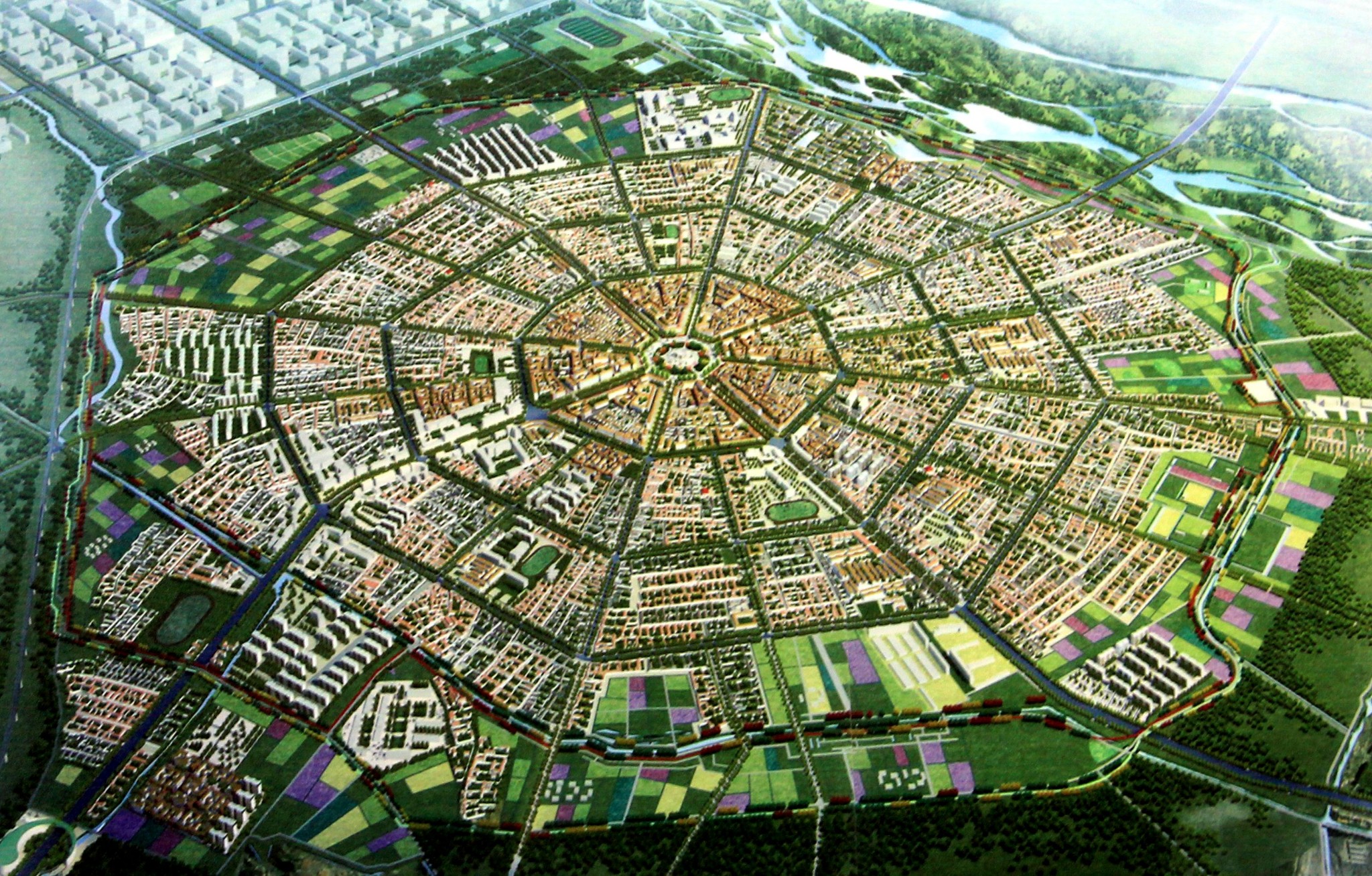 中心广场按八卦方位,以等距离、相同角度向外延伸出的主街