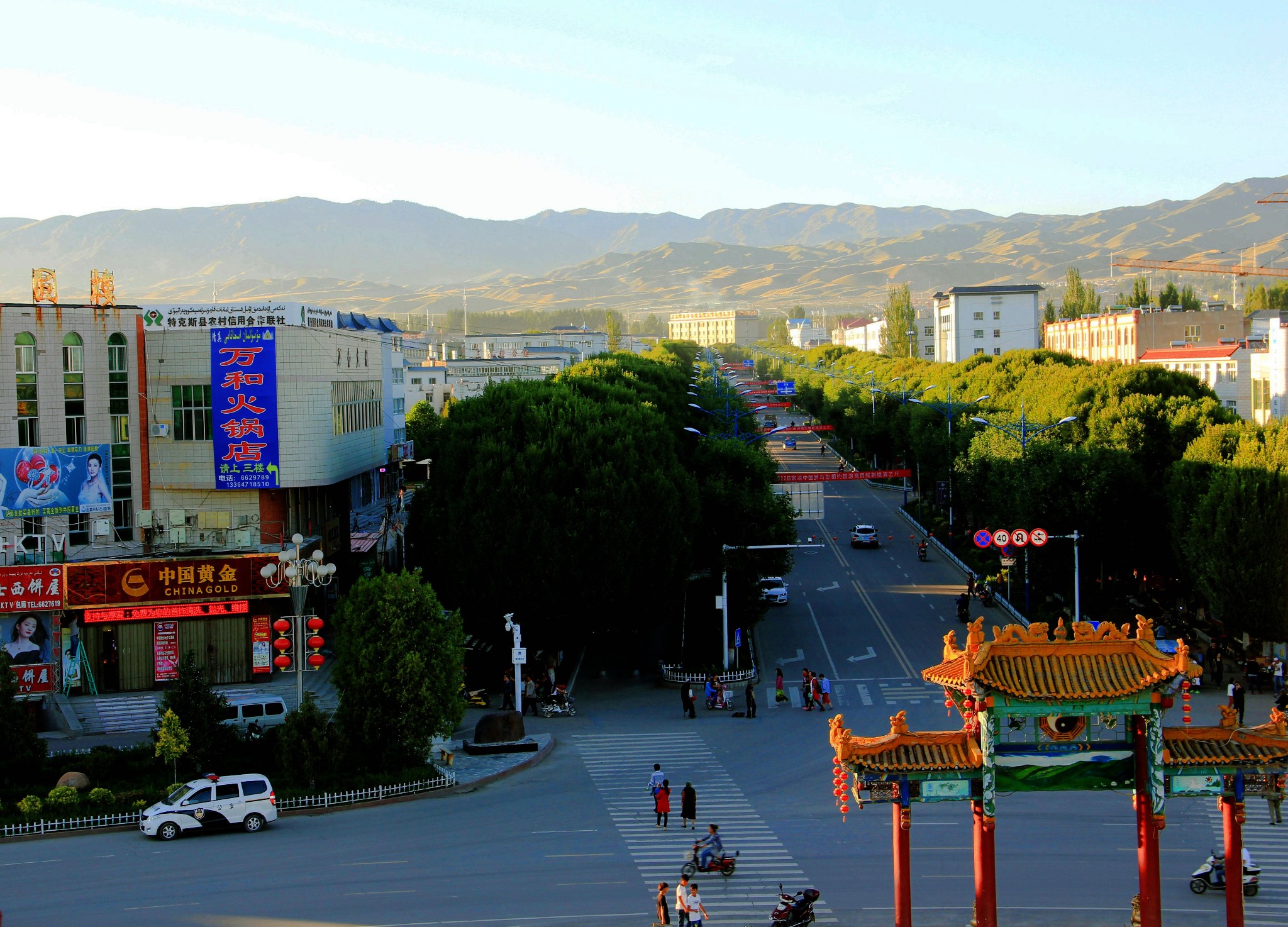特克斯县城是一座中国绝无仅有、最大规模、体现易经文化的八卦城,从县城中心广场按八卦方位,以等距离、相同角度向外延伸出八条主街,每条主街长1200米,每隔360米设一条连接八条主街的环路,由中心向外依次有四条环路,按八卦形成64卦386爻的易经数理。这是一座历史上塞种、月氏、乌孙、回纥、突厥、蒙古、柯尔克孜、哈萨克、维吾尔、汉族等22个民族的人民都曾经繁衍生息的城市;是一座我国历史上第一位和亲公主、细君公主生活的城市;是一座传说由“长春真人邱处机”设计时城市;是一座被上海吉尼斯总部授予“现今世界最大规模的八卦城”的城市;还是一座没有红绿灯(96年正式取消红绿灯)的城市。