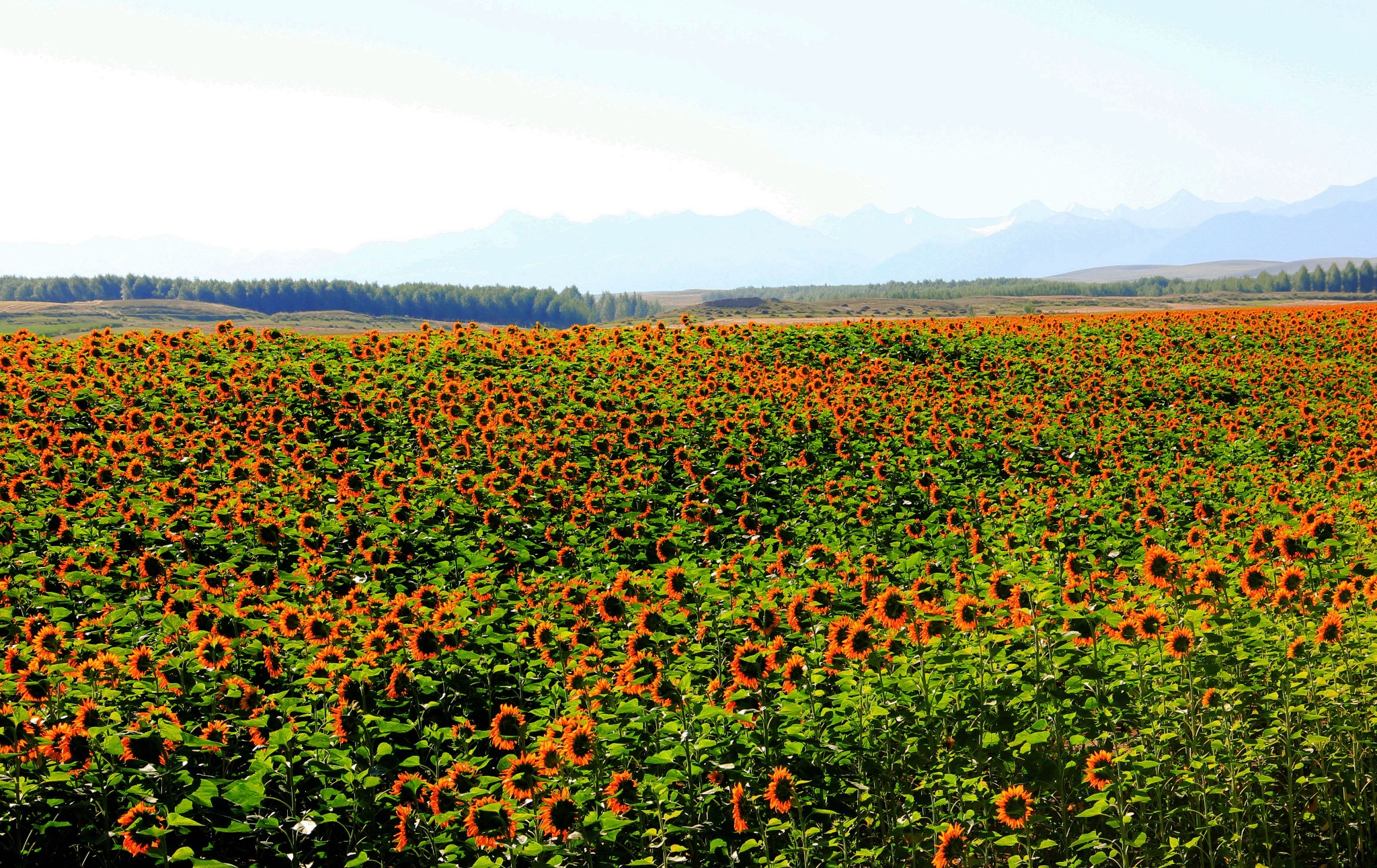在特克斯县城到琼库什台草原的途中,马路两边会有大片大片的向日葵。