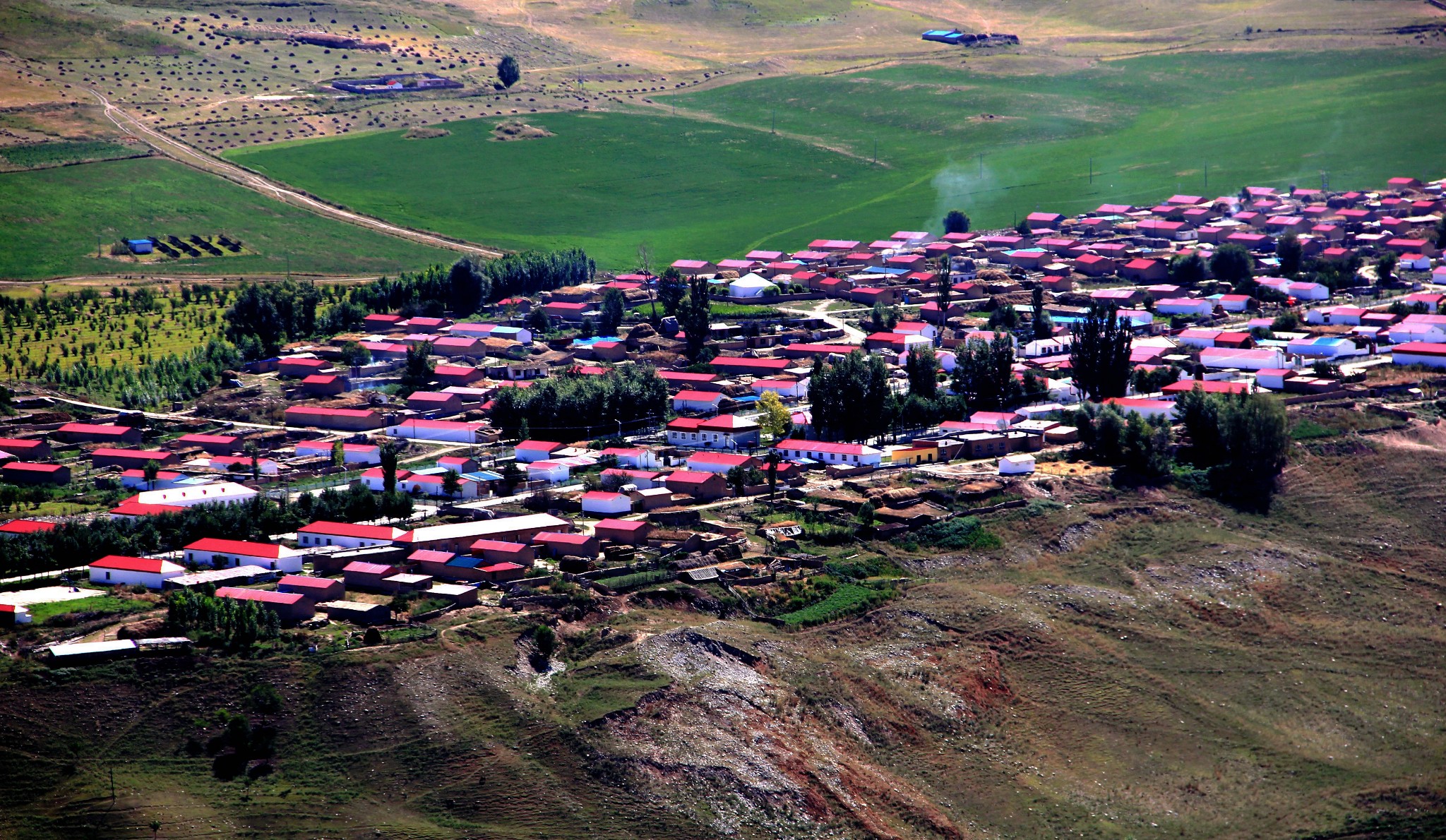 过了小九曲十八湾,便可以看到由政府出资(政府出大头、牧民出小头)为少数民族牧民建造的牧民安居点。
