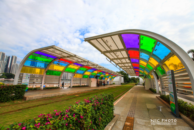 从广州大剧院一直向珠江边走,便到了海心沙公园。