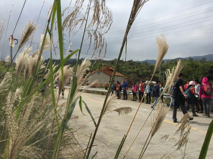 大家下车后,开始整理装备。然后跟着松鼠走一段缓缓上升的公路。而由于和两个妹子排队上洗手间,等我们出发的时候,已经是在队伍最后了。收尾领队波子在后面追杀我们,把我们往前赶!