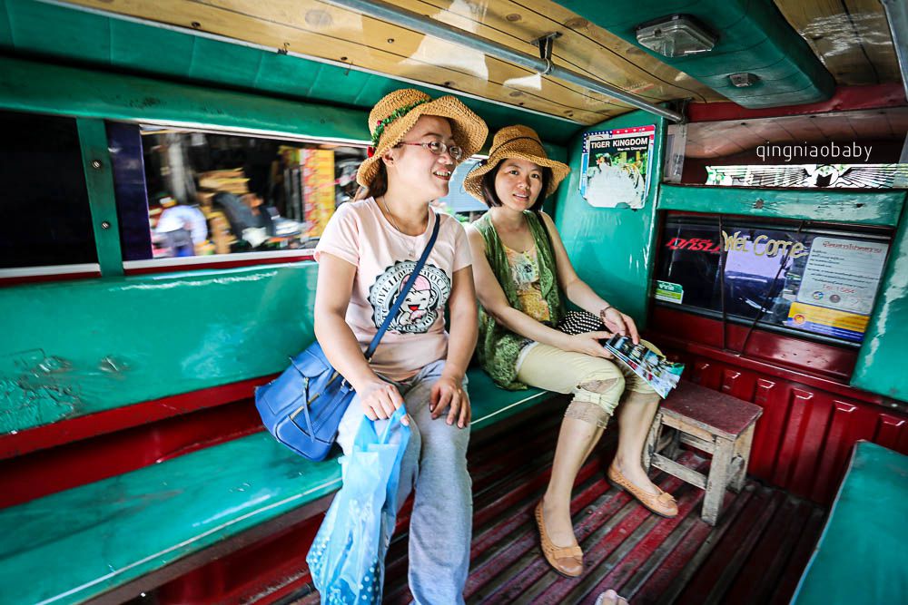 在清迈全程打车都可以通过双条车和突突车解决,招手即停,古城内20株/人,超过古城内远一些的路程30株/人,如果是去素贴山双龙寺40株/人。下山60株/人。不会讲泰语就讲英文,英文不行就拿手机计算器出来只管按,砍价合适后就上车开逛。要去什么地方不会讲泰语就讲英文,英文不行就拿手机拍照给司机看照片,总有一种办法能把你带到你想去的地方。tuk tuk突突车跟国内三轮摩的差不多,去的范围没有双条车大,在古城内大约40B~50B一人,可以砍价。但是最适合清迈的游玩方式就是两人租一台小绵羊摩托车,根据排量大小,小摩托200B/天,大摩托250B/天,需要押护照,不需要押金,还车时再缴租金,加50B的油就满缸了。前提是你一定要会骑,不戴头盔进警察局那都是小事儿。我就担心路上别人的车速飞快你慢慢骑会被撞飞.......