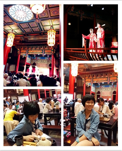 在老茶馆里,你可以站着看(不用花钱),也可以花上10元钱端上一杯香茗,坐在八仙桌边品茗边看戏,好好享受一番。