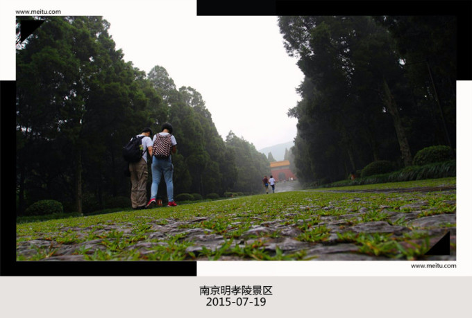 我们到景区的时候还不到6点半,明孝陵景区笼着一层薄雾,浓荫翠绿,空气很是清新,我狠狠地深呼吸了几口