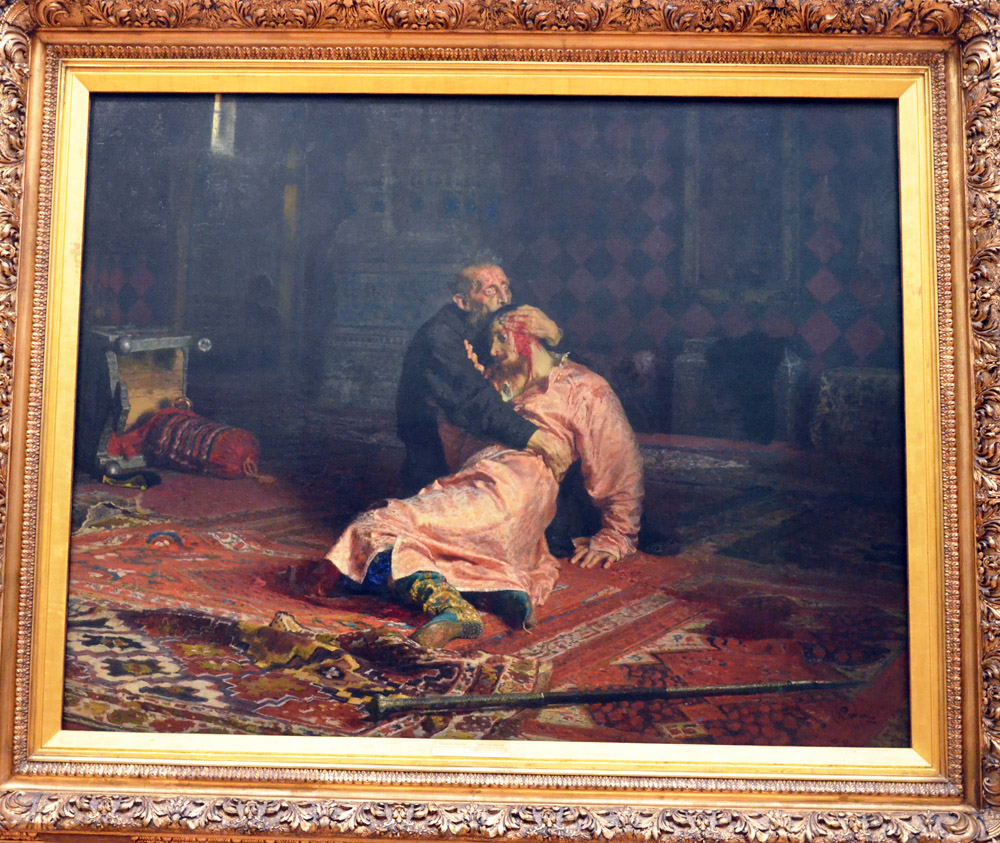 在画廊里还可以看到克拉斯科依的油画《无法抑 制的悲痛》和《基督在旷野》、彼罗夫的油画《送葬》和《三套车》列宾的《伏尔加纤夫》和《伊凡杀子》、苏里科夫的《女贵族莫罗佐娃》、瓦斯 涅佐夫的《三勇士》、列维坦的《永恒的宁静》等等杰作
