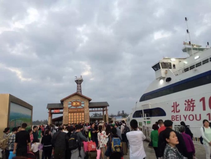 我们在网上提前定的下午5:30的北海到涠洲岛大船,提前一小时在北海银滩客运码头取票即可,春节期间票量非常紧张,但是最好不管什么时候去都提前把上岛的船票定好,以防万一,因为现在上岛的人多了,会限制上岛人数的!我们把来回的船票都提前在去哪儿网定好了,就是害怕票量紧张……船有大船小船之分,大船150一个人,小船130一个人,建议大家坐大船,小船会比较晕……涠洲岛门票是115一个人,学生票是60元~
