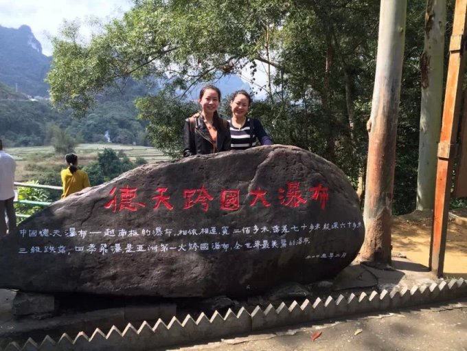 我们住的瓦舍楼底下就是45路公交车,直接到琅东客运站~以前有直接去德天大瀑布的车,现在说是到德天大瀑布,其实只能到大兴,88元一个人,在大兴还得转客运车去德天……我们去大兴的客运车上刚好有几个也要去德天,于是我们刚好六个人一起包了个面包车去德天,司机在那儿等下我们,玩儿出来之后再把我们六个送到大兴,一共350,平摊下来一个人差不多50元~这次拼车中还认识了一个在深圳上班的哥哥,他以前大学就是在西安上学的,好有缘~之后我们就一起玩儿~