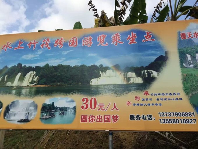 德天可以乘船游览瀑布,船会开到接近瀑布那儿,特别凉快~坐船一个人30元~下船后走一点就会看到国界碑,还有许多越南的小商贩~有很多越南的小玩意儿大概不到两个小时就可以逛完啦
