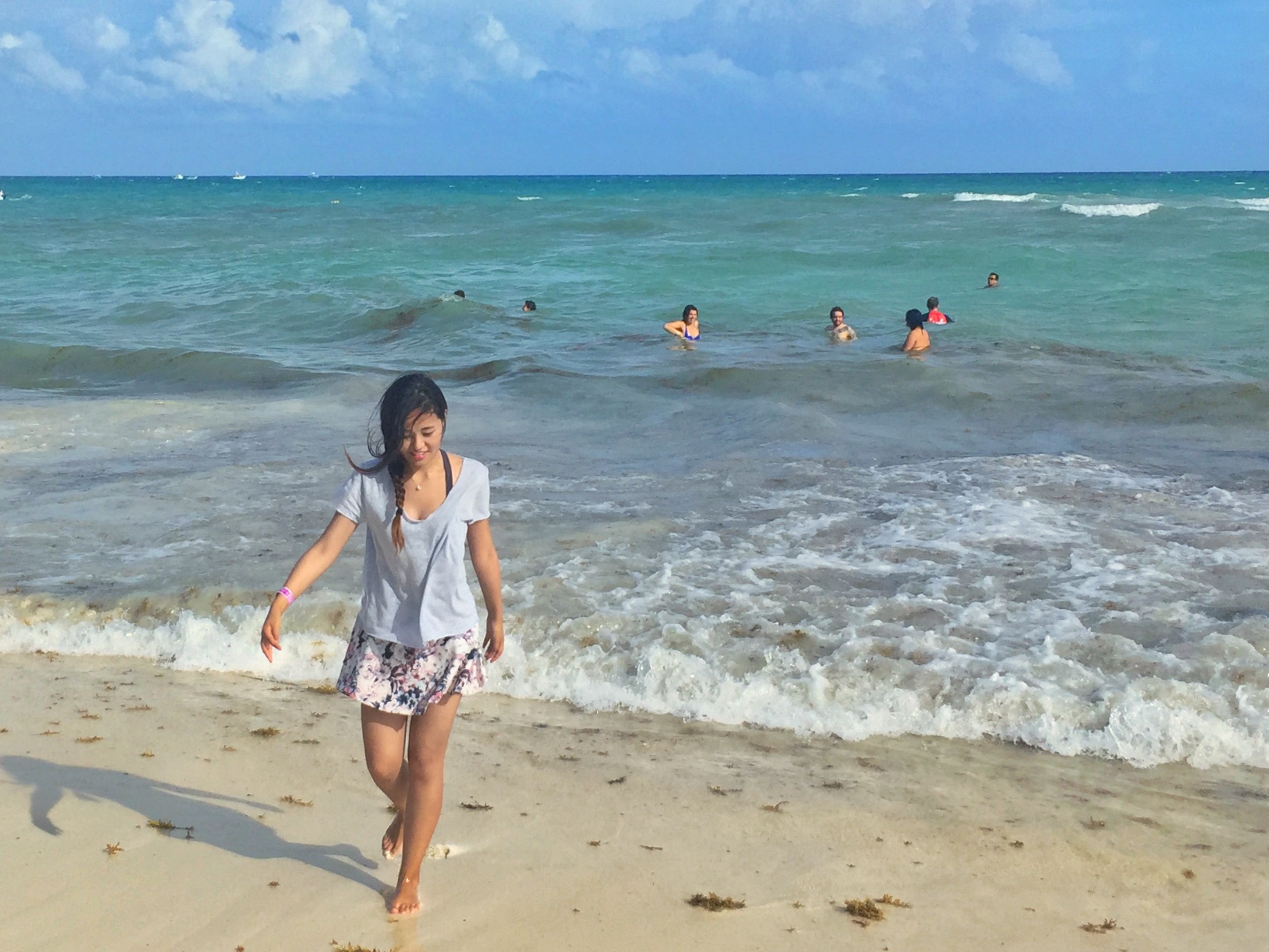 因为住的两个酒店都没有自己的海滩,所以下午我们坐公交去了酒店去的公共海滩-Playa Delfies. 这个海滩挺好找的,就在7字型靠近最下面的地方,在马路上有一个巨大的“cancun”, 而且游客众多,车子也多。大家坐公交去的话一般不怕错过这个地方啦~