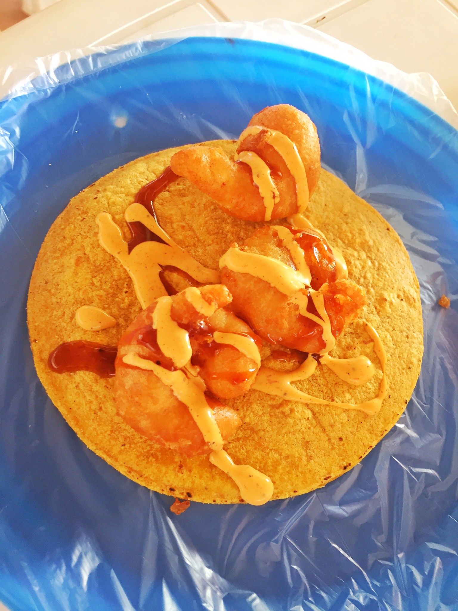 上图是shrimp taco,这个好吃!我后来又要了一份!