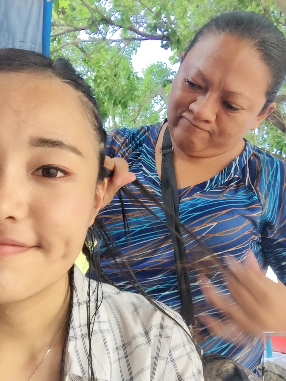 吃完午饭,我就去market 28, 随便找了一家店编辫子。不得不说,编的时候真的好疼呀,不过这位墨西哥大妈编的好快!我只编了半个头,因为不想太雷鬼。。。花了5刀~