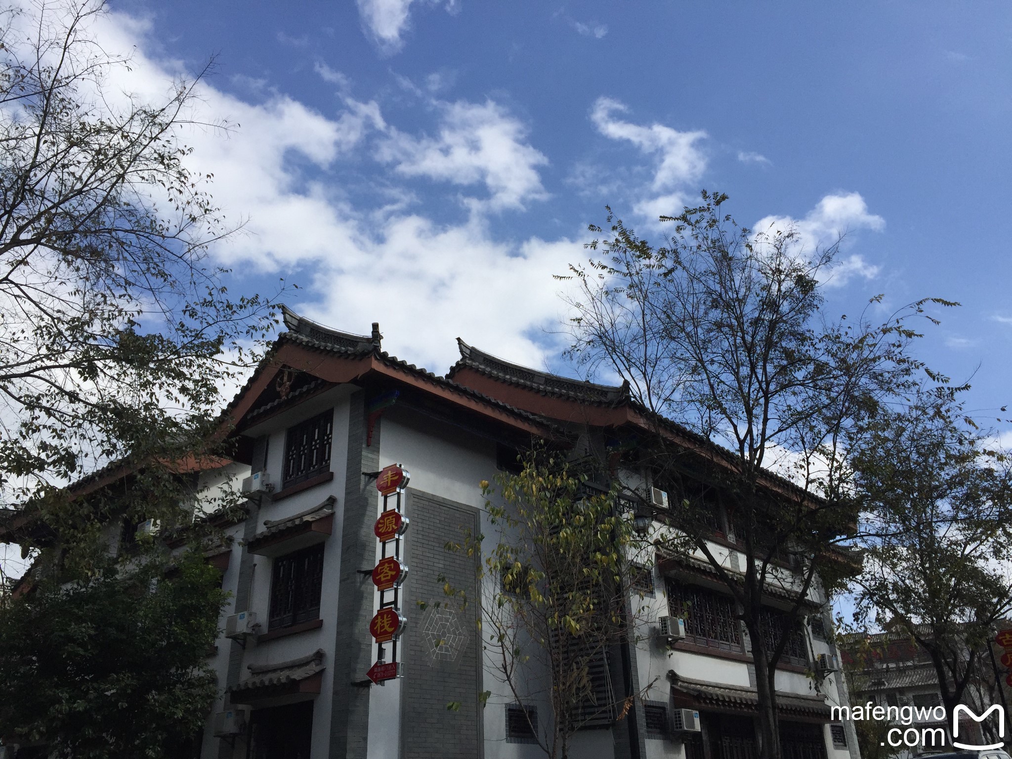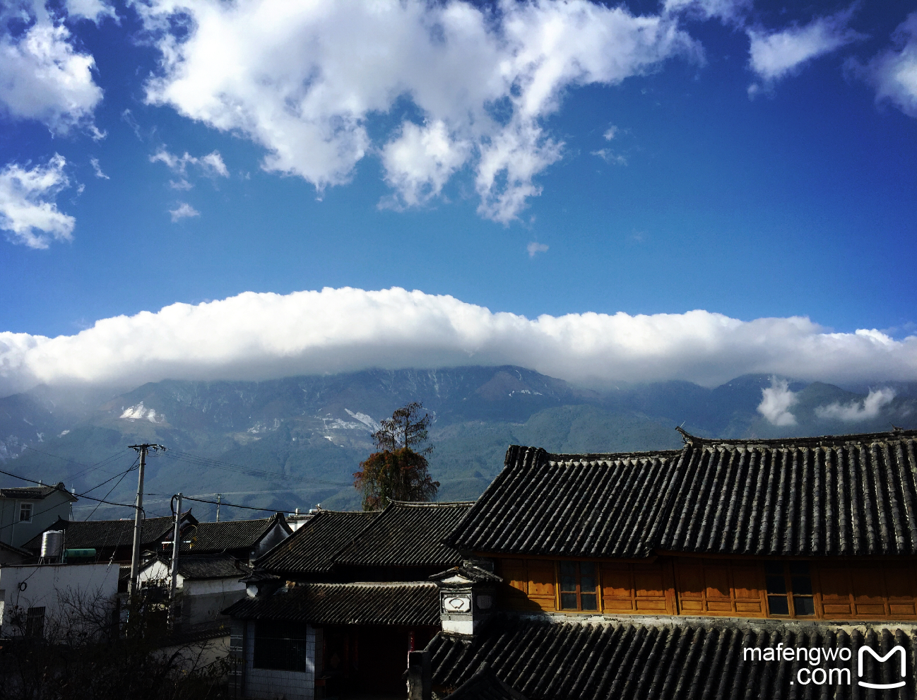 客栈后面的山顶被连绵的云所笼罩