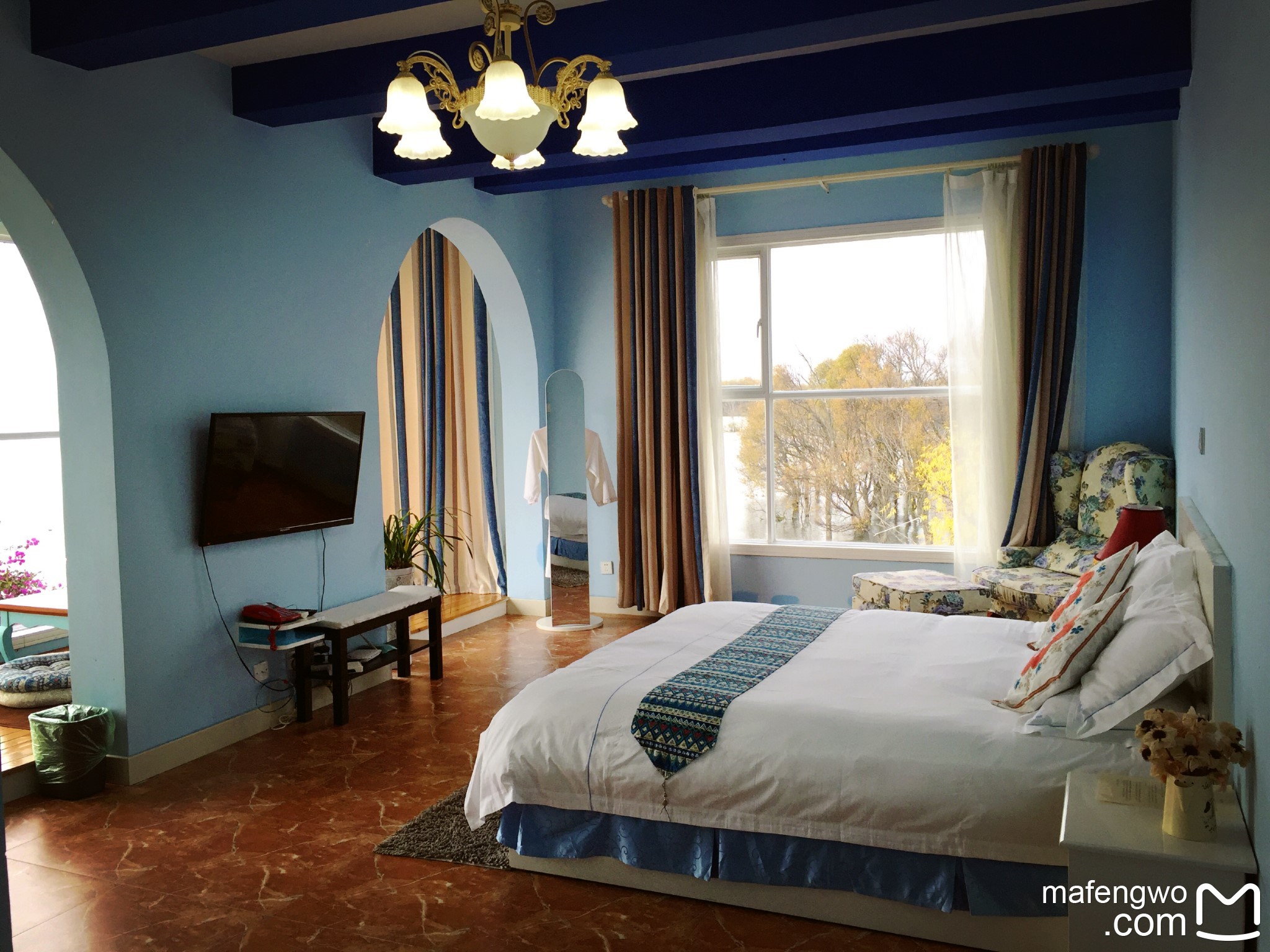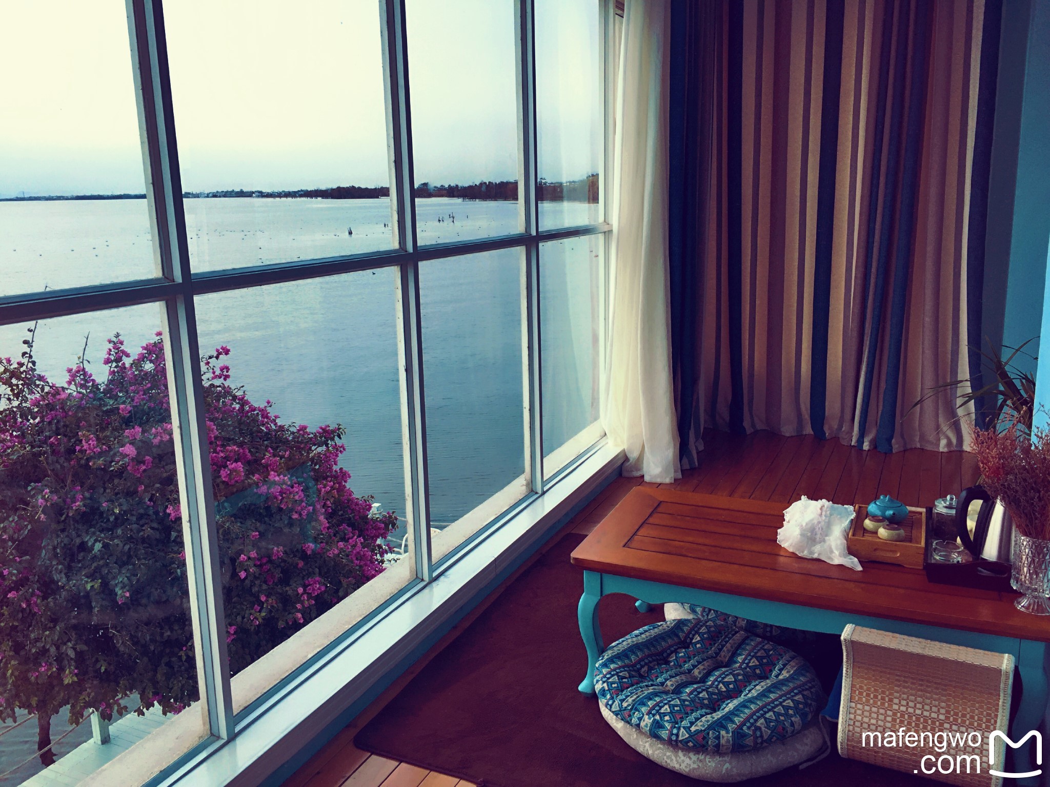第二天的露台被我们玩乱了,放一张第一天刚到达时候的照片,窗帘拉开也是洱海