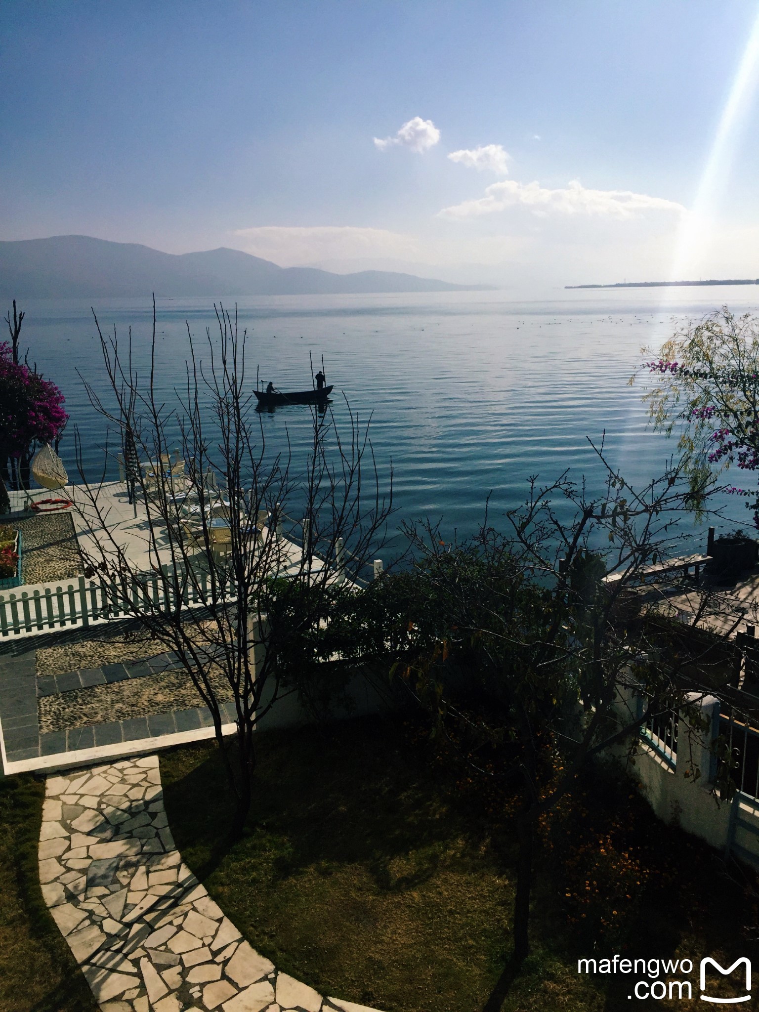 我们住的地方叫洱海月亮岛湖景客栈(银桥镇下波淜村一社129号),位于洱海的西侧,属于磻溪村区域,客栈在洱海边,最大拥有270度的湖景房有2间,2楼的婵娟和3楼的瑶镜。 自驾 去的车子需要停在巷口的一个院子里,10元/晚的看车费不限进出次数,走进去不到5分钟。房间里没有空调、暖气和电热毯,冬天怕冷的话可以问老板要电暖器,房费里包含的早餐就是简单的稀饭、馒头、牛奶和鸡蛋。携程,去哪儿上都可以直接预定。