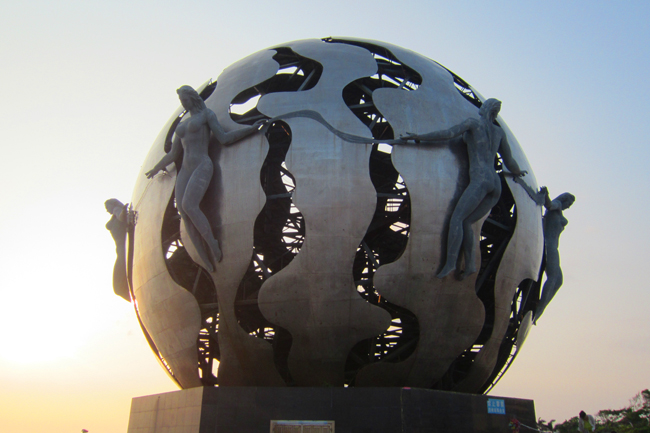 然而,眼前的银滩,已不复记忆中的傲气。海看起来很普通,人也确实不多。乌黑的大圆球雕像,在夕照下显得孤单而倔强。沙滩边烂尾的盥洗亭,更是无所顾忌地展示着萧瑟。