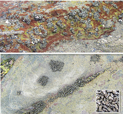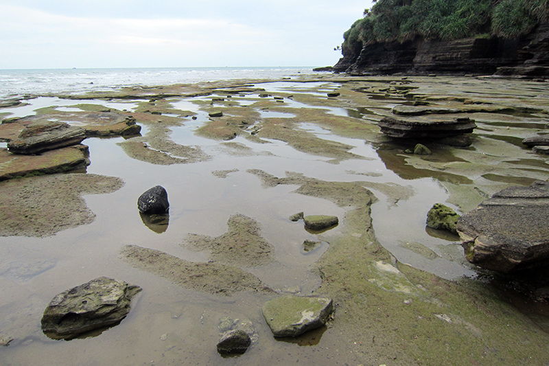 也许是天色的缘故,没看出五彩滩有多艳丽,基本上一眼望去都是青黑色调。但以其别名芝麻滩来对照,有一块区域还是很贴切。那里的黑色石块上面布满白色斑点,形状不如千奇百怪的海蚀岩好看,布色倒是独树一帜。