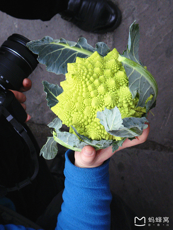 这里有许多买各种各样花环和蔬菜的人们,这个蔬菜长得很像菜花