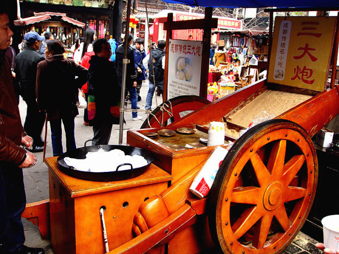旁边的小童道就可以到锦里去,锦里里面的好吃的很多,人也很多,比如里面的叶儿粑,香辣凉糕,糖油果子···