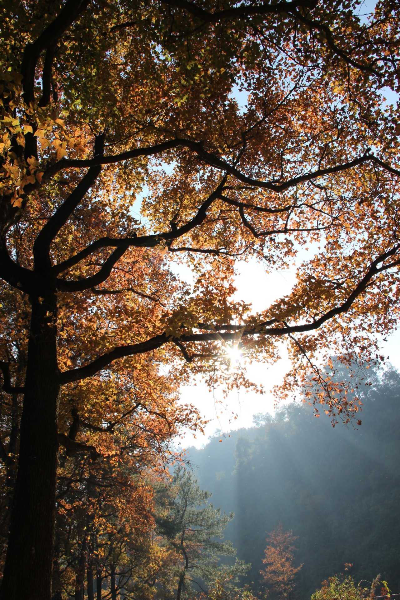 为2015年的秋天画上一撇,不得不说这真是个令人略带惆怅的季节,草黄了,花谢了,叶子凋零了,让人提不起劲来。就在这时枫树黄了,在这枯萎的季节显得格外耀眼,忽然间这时节就变得令人期待起来了。于是在合适的时间,选择去南黄古道看枫叶,这几年推广做的不错,来游玩的人很多,特意避开了周末。天气很好,很温暖,山路并不难走,在看到前几棵的时候,感觉虽然树很大但是稀稀拉拉的就那么一两棵,觉得不过如此,再往里走就完全变成惊叹了。枫叶黄的很惊艳,当风吹过,枫叶飒飒的落下,那一刻的时间仿佛是静止的。看着风吹着地上的落叶,起了又落,落了又起,来来回回好几转,好像穿透了无数的风霜与时光,辗转反侧归来此地······