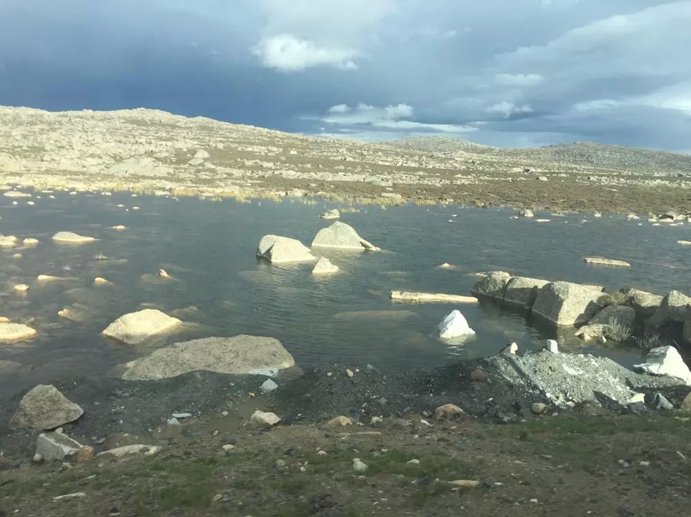 海子山海拨高,一下车就头痛得要命,在车上用手机拍了一两张留念