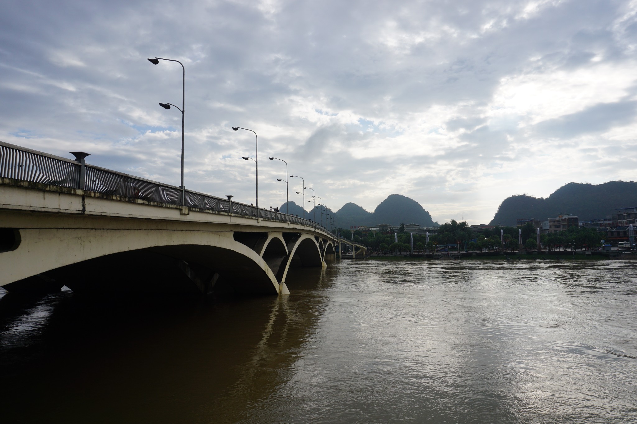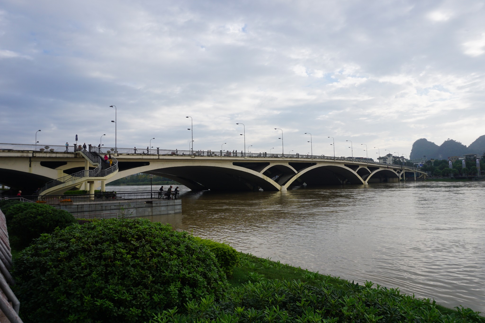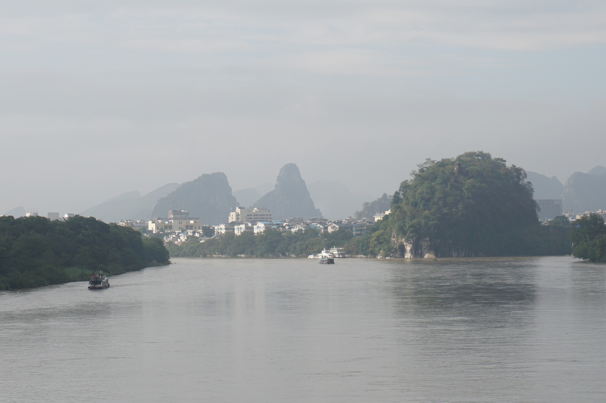 出了旅舍,过了马路,边上就是漓江,但是这个时候,似乎正是汛期,水挺浑浊的,看不到比较美的漓江!