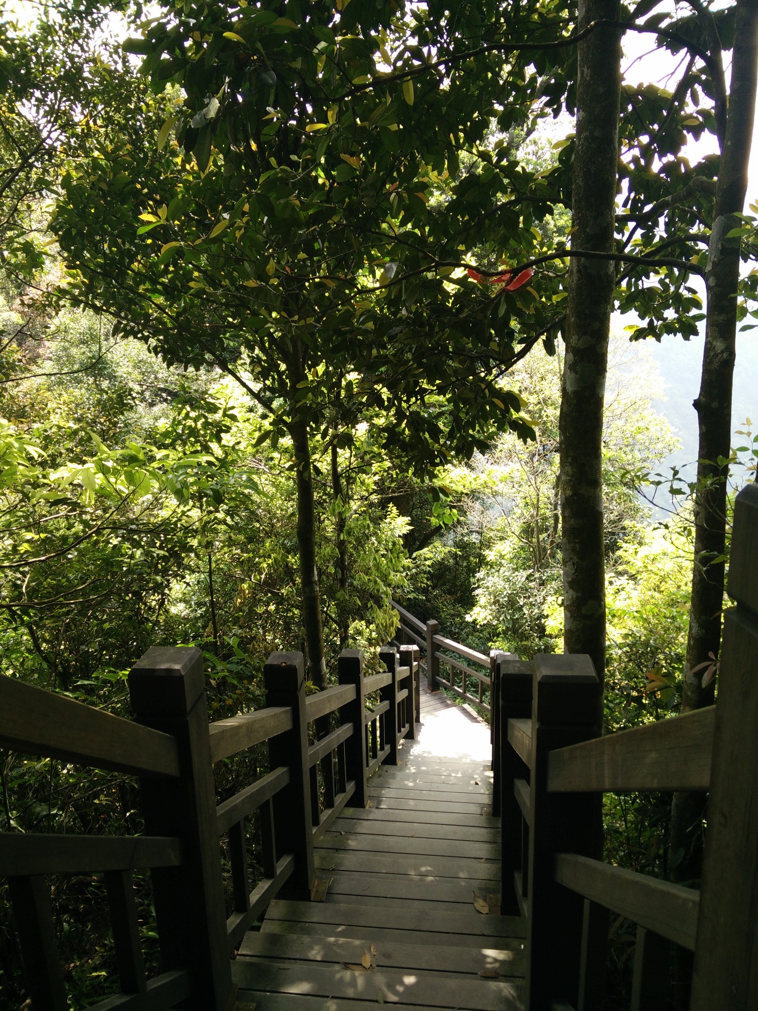 一路在山林间穿梭,没有走回头路,沿着山边的楼梯往上走,走到路上的时候,已经是满头汗,像是做了剧烈运动一样!