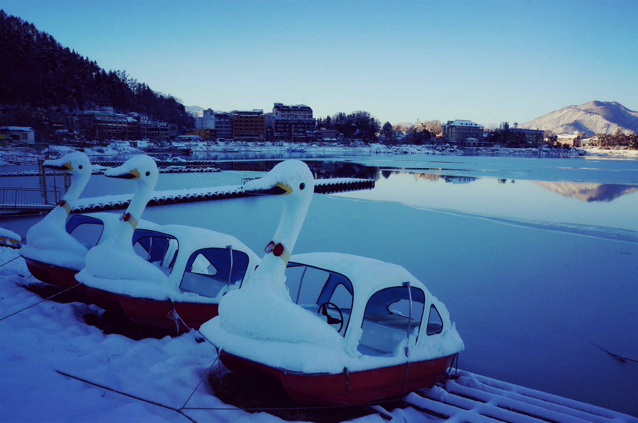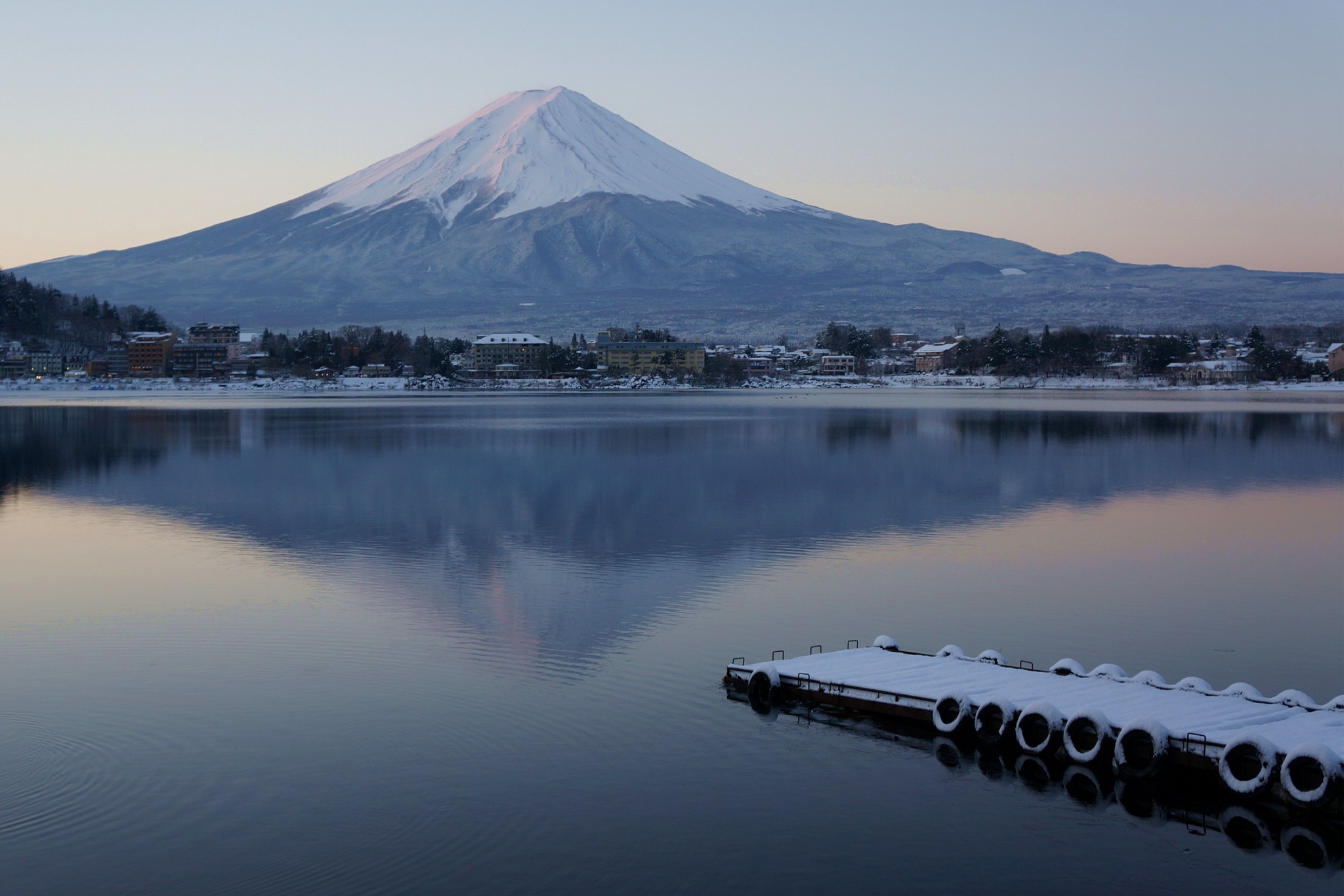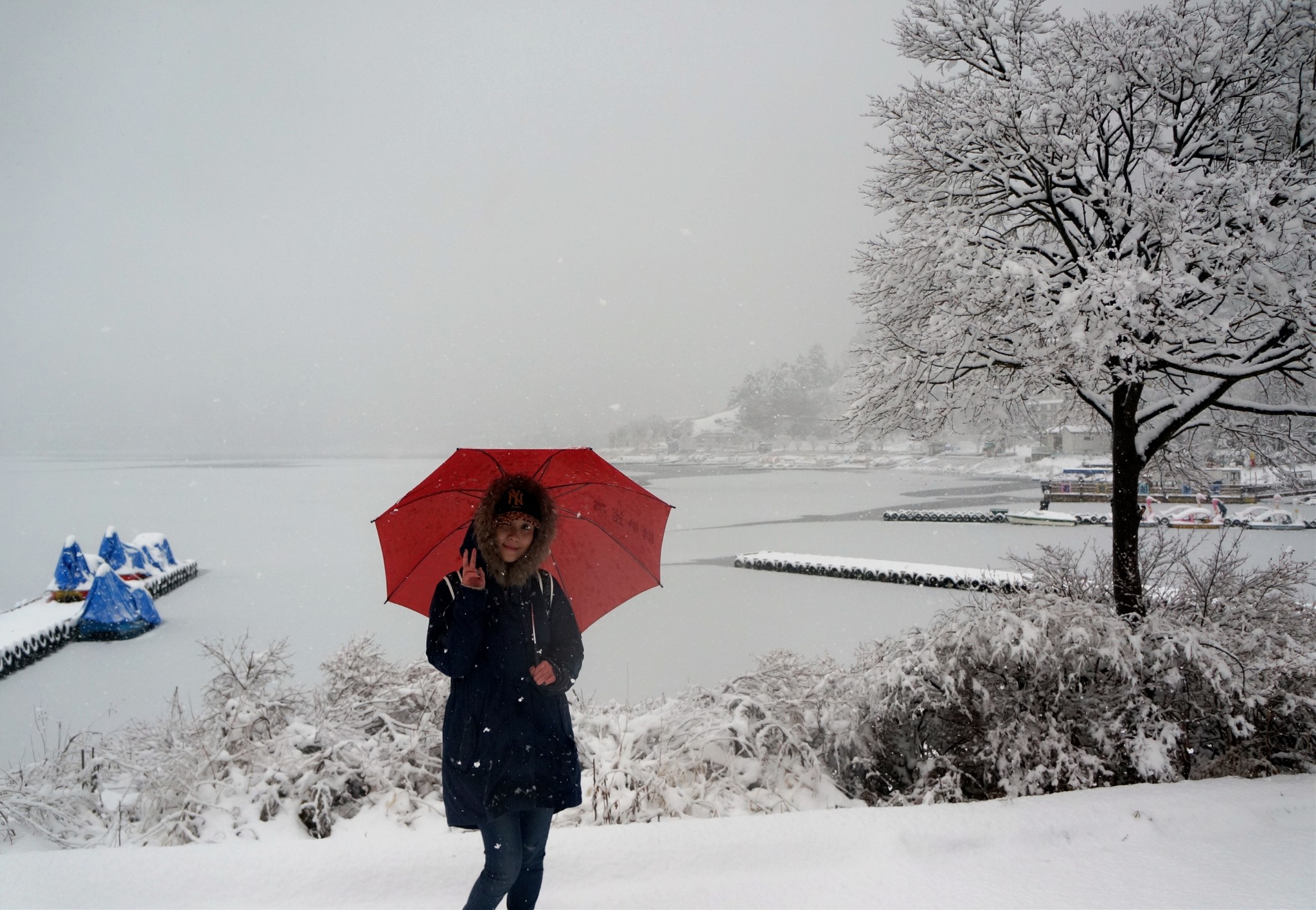 河口湖偶遇暴雪 瞬间化作童话小镇