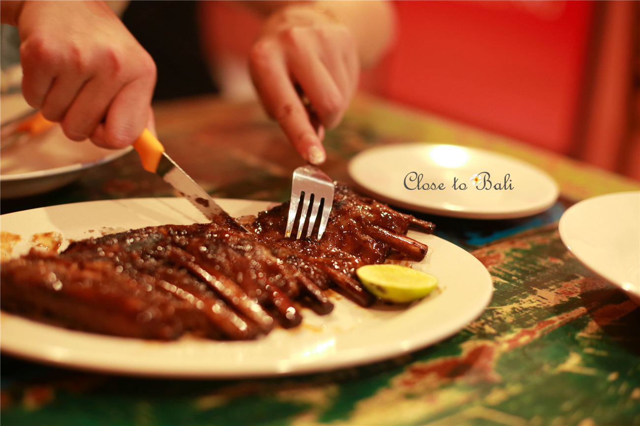 阿龙知道我们刚从中国过来,肯定吃不惯当地的印尼菜,所以贴心的为我们安排了一家烤猪肋骨的餐厅。这家店的装修虽然很简陋,但是猪肋骨烤的超级嫩,酱汁也甜甜的,非常对我的口味,是我印象中最好吃的一顿!