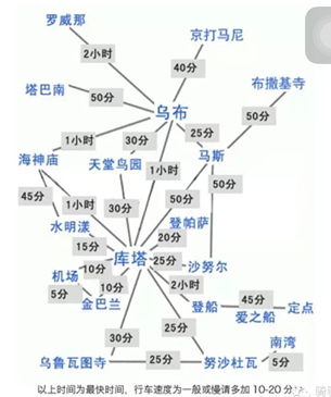 一张图告诉你 从哪里去到哪里 需要多少时间~(建议包车游,因为巴厘岛很大!!!基础设施的公共交通并没有那么发达)